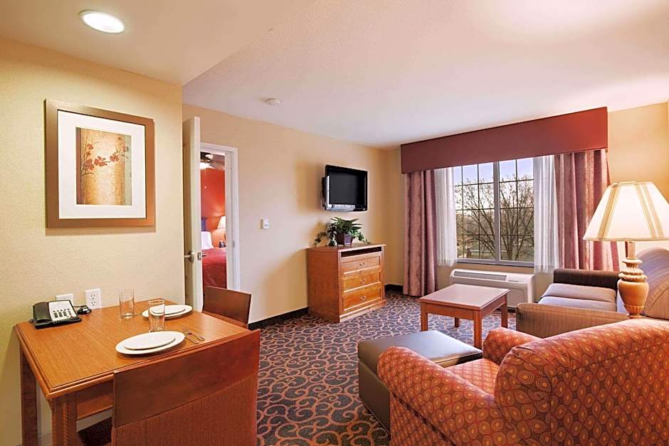 This two-bedroom suite includes a flat-screen TV and features amenities for the hearing and mobility disabled.